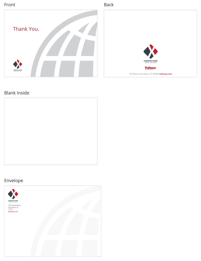 Nothing shows your appreciation like a handwritten note. You can customize this Trailways folded card by adding your company logo.